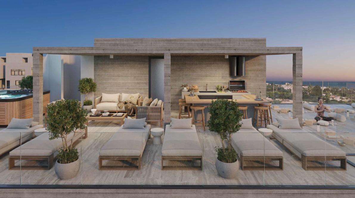 Apartment for sale in Zakaki, Limassol, just 700 meters away from the largest casino in Europe. There is a spacious yoga area, barbecue area and Jacuzzi on the roof. The complex has a total of 11 apartments: 8 single apartments and 3 studios. The apartments are located on 3 floors. The apartment combines high-end design, finishes and the latest trends using high-quality materials and plumbing. Each apartment in the complex is designed with maximum comfort in mind. The project includes an open-plan living room and kitchen, as well as a covered veranda. There is also a covered parking and a private storage room. The location of the complex provides easy access to the new golf resort, Ladies Mile Beach, a lively shopping mall and an aquapark, all within a short drive. The project is in the off-plan stage.